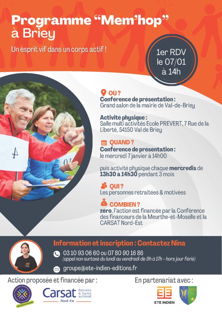 Le CCAS de Val de Briey, la Conférence des financeurs de Meurthe-et-Moselle et la CARSAT Nord-Est vous proposent des ateliers GRATUITS !