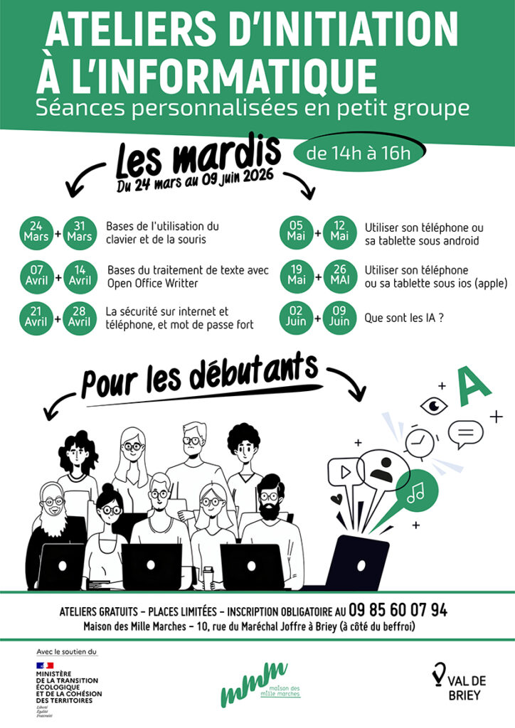 La Maison des Mille Marches propose des sessions d’initiation à l’informatique pour les débutants. Grâce à ces ateliers, vous apprendrez à vous familiariser avec les différents outils numériques.