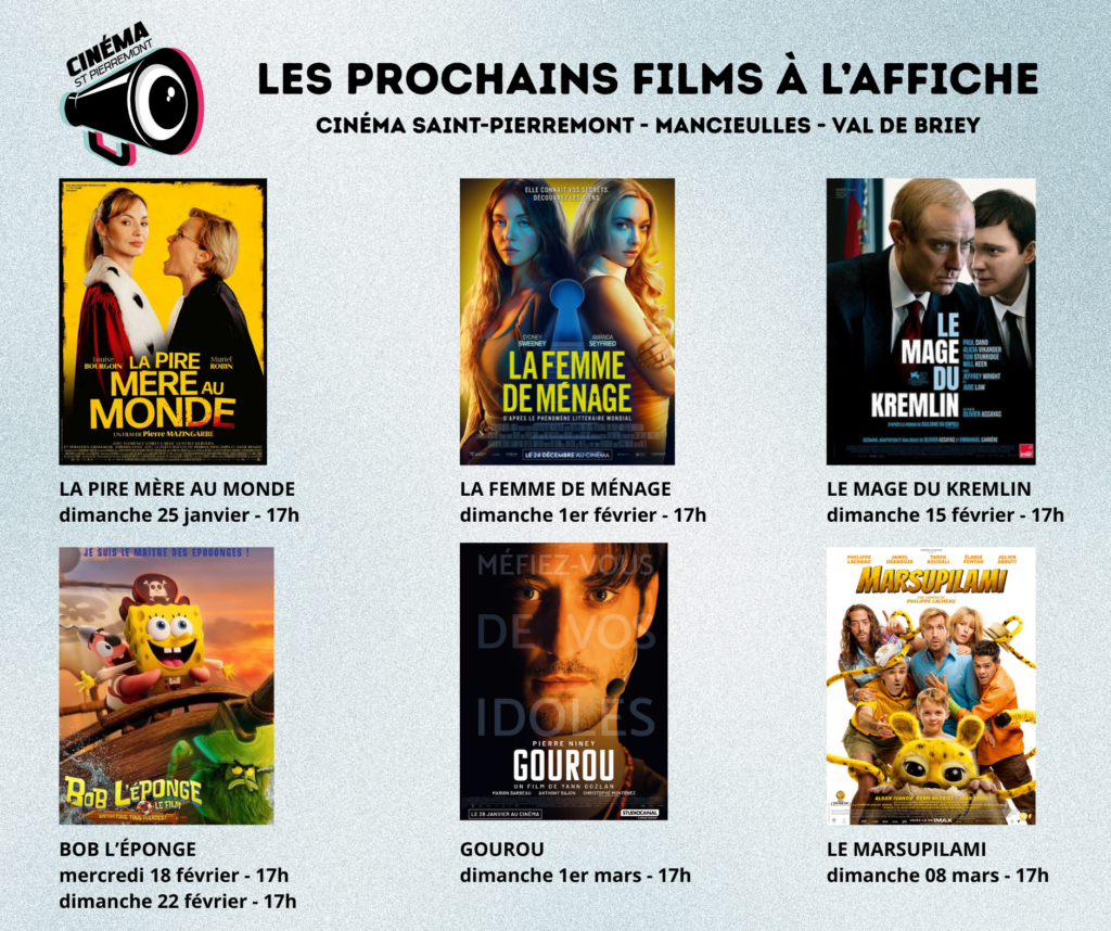 A noter dès à présent dans votre agenda : les prochains films à l’affiche du Cinéma Saint-Pierremont !